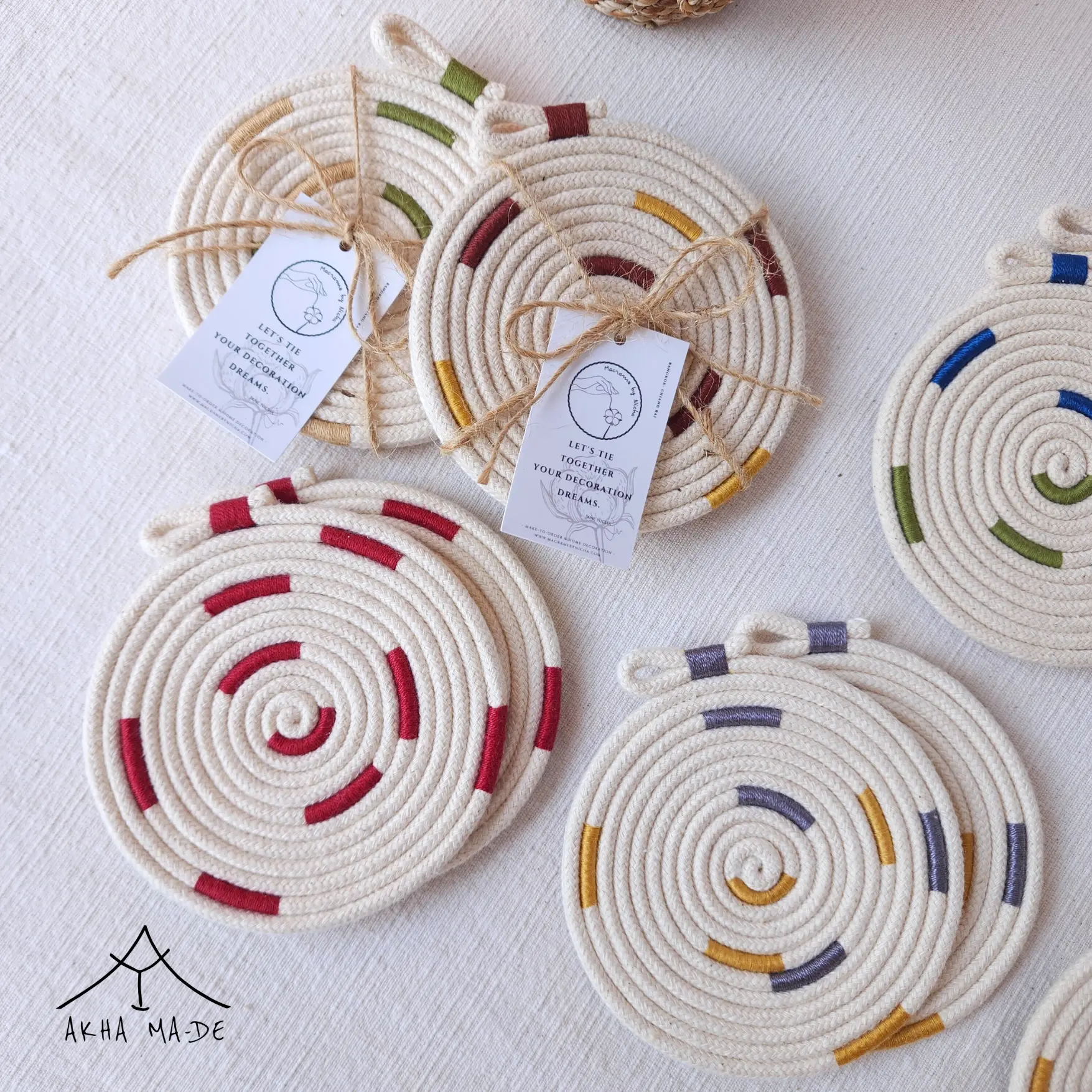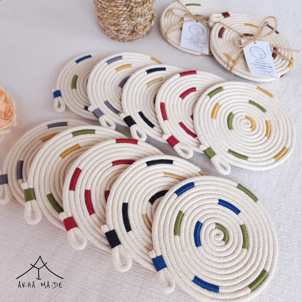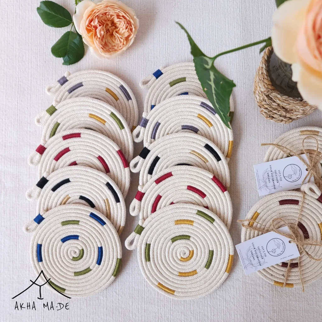 Handwoven with care by Akha women in Northern Thailand, these cotton coasters bring a touch of tradition and meaning to your celebration. Each set includes two coasters, crafted using age-old techniques and natural dyes. Thoughtful, ethical, and beautiful, they make a memorable keepsake for your guests. Washable by hand. Diameter: 10.5 cm. Made to order in ~30 days.