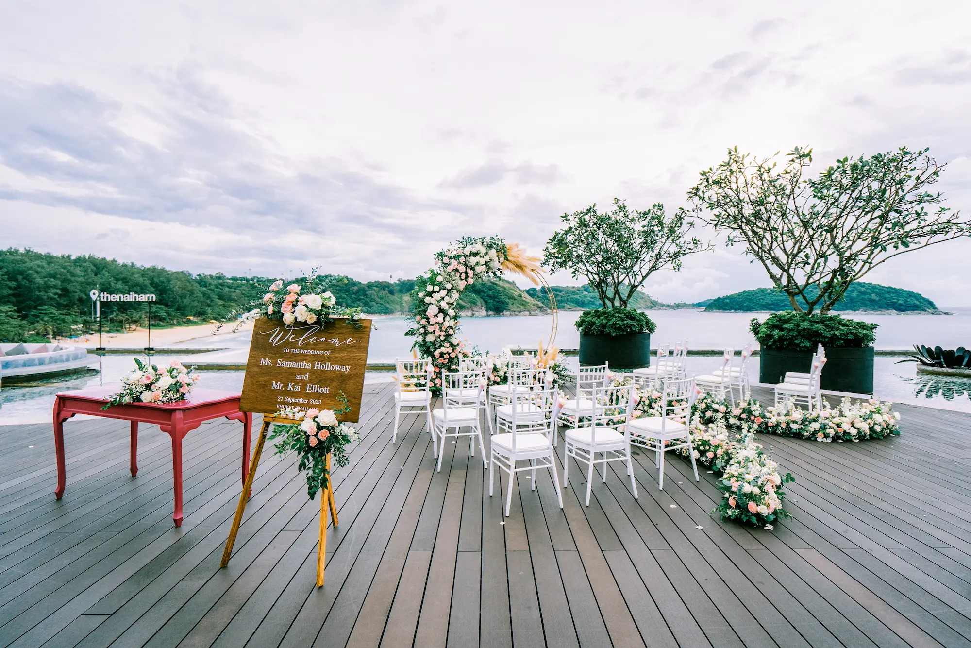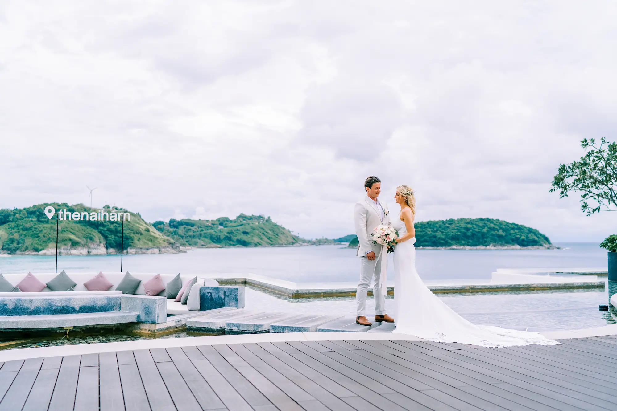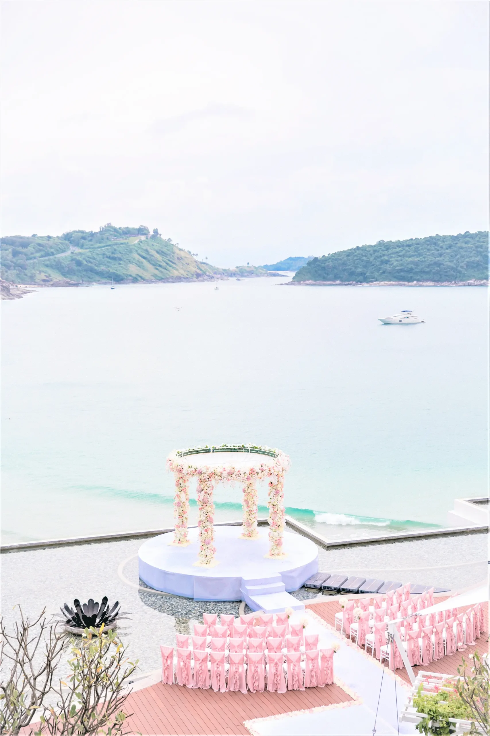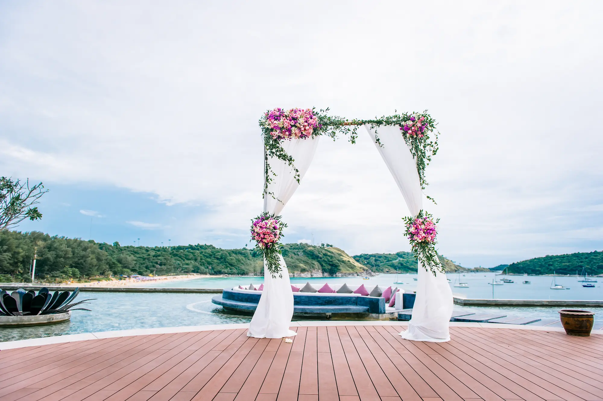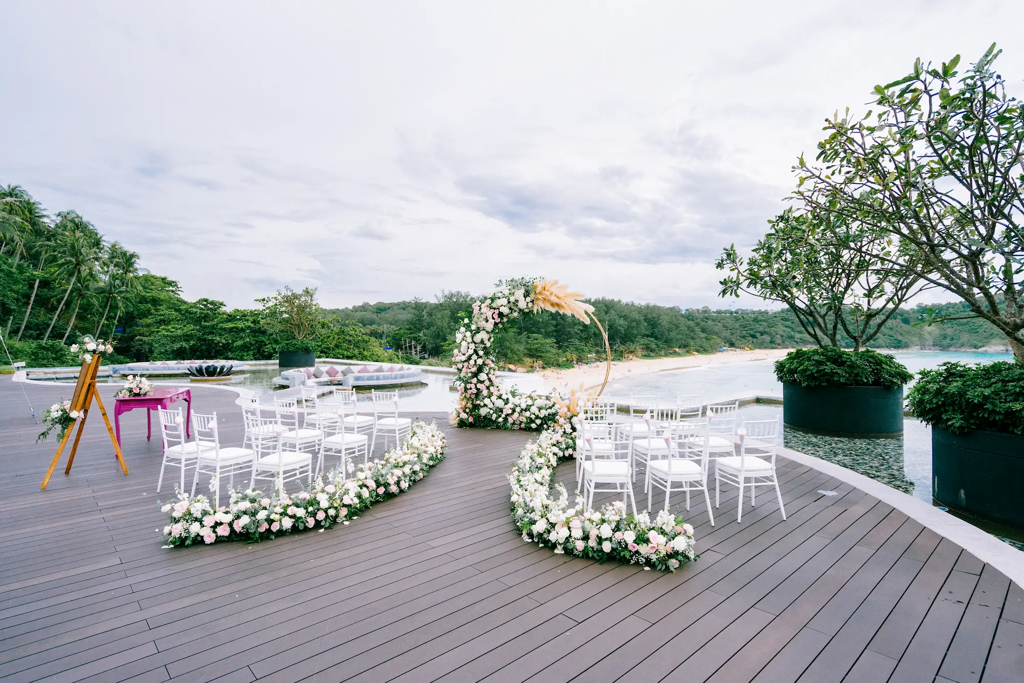 The only hotel right on the beautiful Nai Harn Bay, this property is also the only Phuket member of the Leading Hotels of the World. The Poolside Deck is the ideal location for the ceremony, featuring a scenographic platform in the middle of the pool for the bridal couple to exchange vows on. Wonderful photographs guaranteed. For the reception we suggest moving to the large restaurant downstairs, where a private area can be reserved for the wedding party.