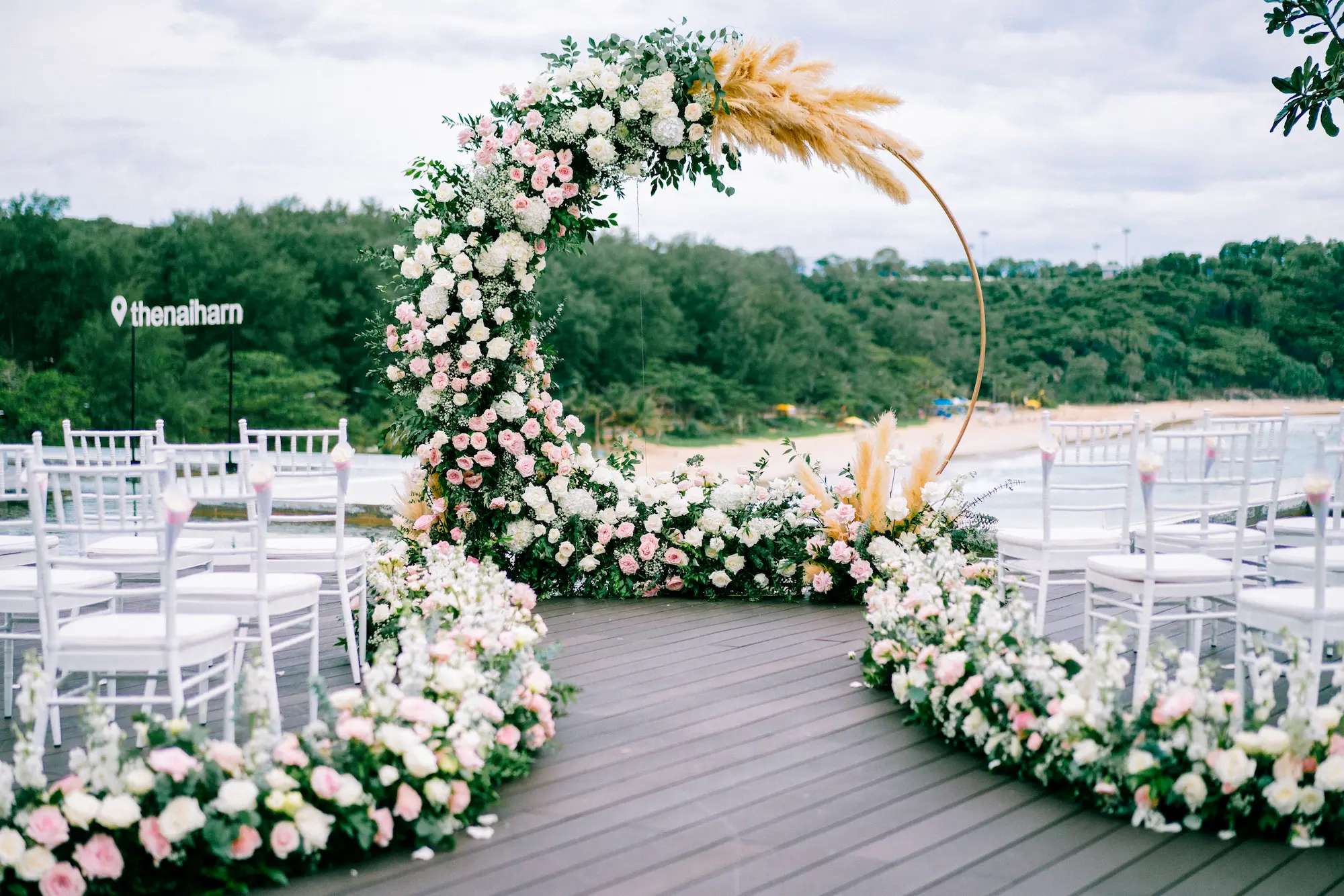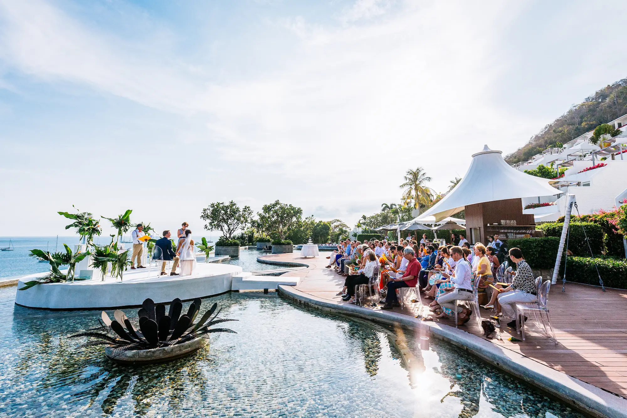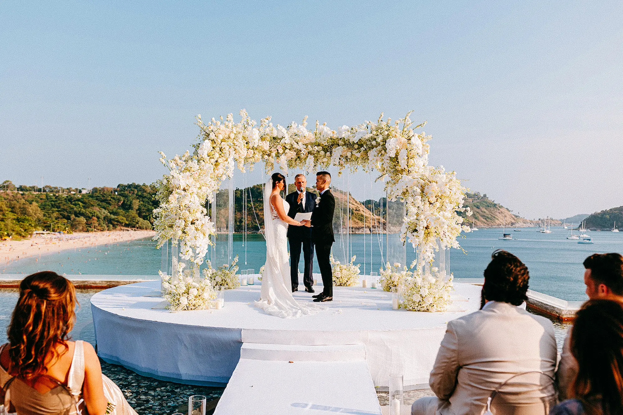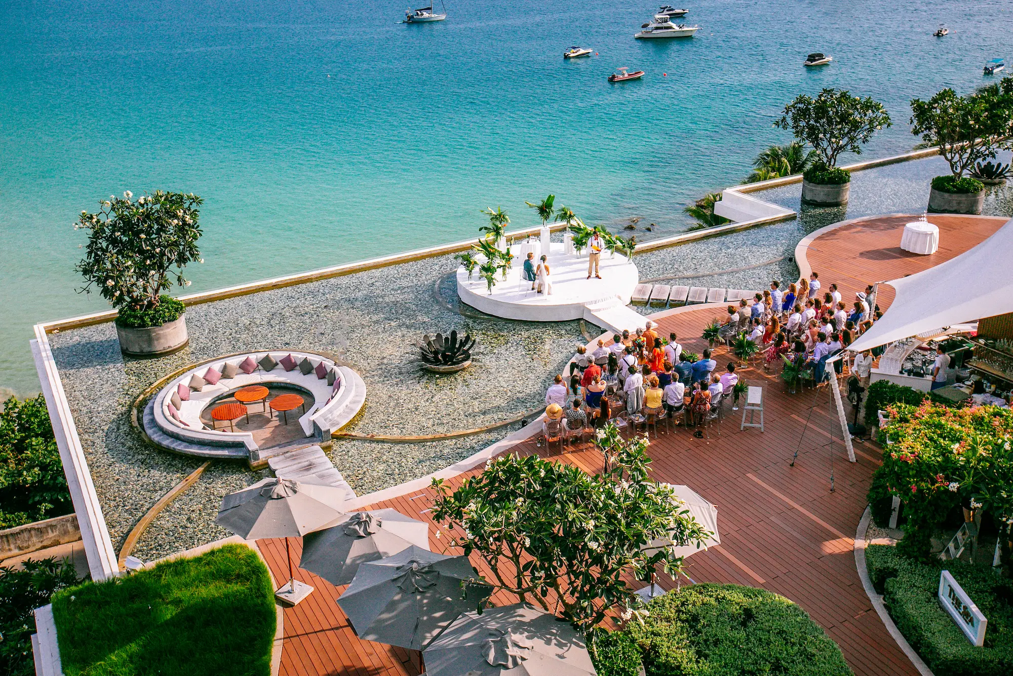 The only hotel right on the beautiful Nai Harn Bay, this property is also the only Phuket member of the Leading Hotels of the World. The Poolside Deck is the ideal location for the ceremony, featuring a scenographic platform in the middle of the pool for the bridal couple to exchange vows on. Wonderful photographs guaranteed. For the reception we suggest moving to the large restaurant downstairs, where a private area can be reserved for the wedding party.