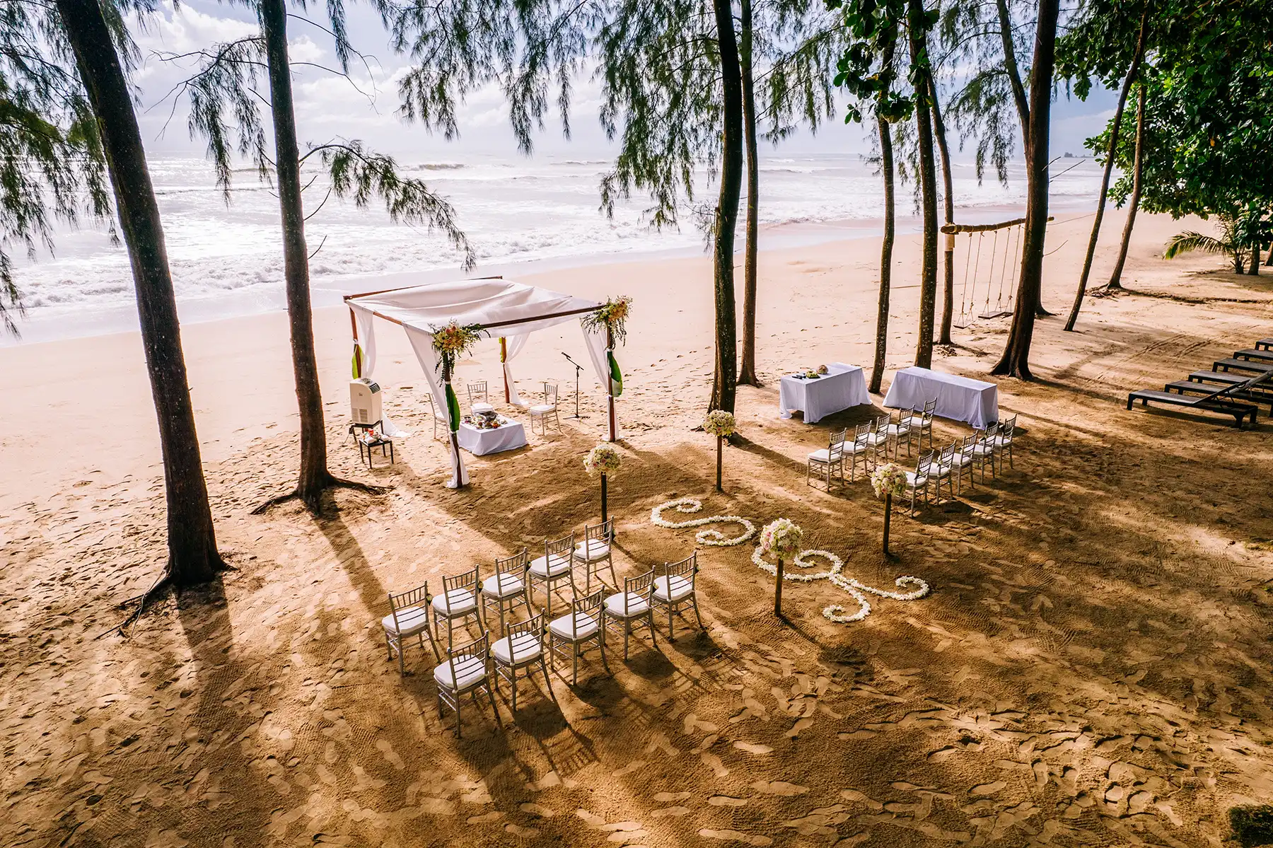 - Kalima Khao Lak. A hidden gem surrounded by mangroves, rivers, and forest, Kalima Khao Lak feels like your own private retreat. A short bridge connects the resort to the quiet beach, where ceremonies feel wonderfully secluded. Add to that a freshwater stream flowing into a lagoon and a stylish open-air restaurant for the reception, and you have a setting that’s natural, romantic, and visually unique.