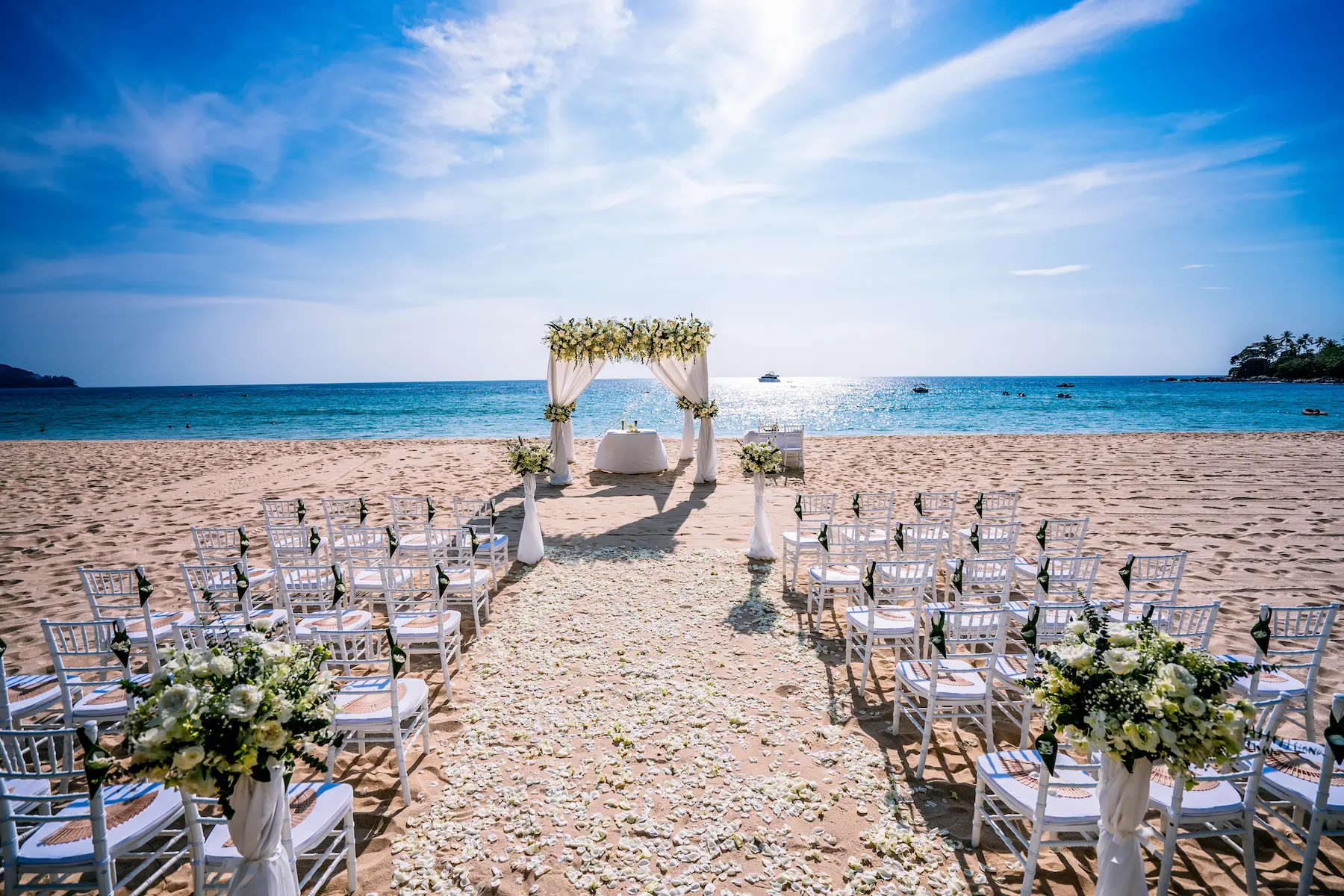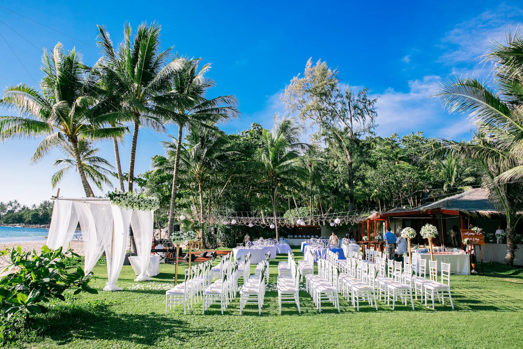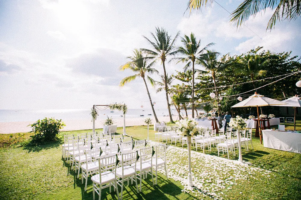 A luxury beachfront resort with a fascinating history, the Surin is located right on the secluded Pansea Beach. The outstanding contemporary design is the work of renowned American architect Edward Tuttle, who harmonized Thai and Western elements into a timeless masterpiece. There is an amazing beachfront area dedicated exclusively to weddings, guaranteeing absolute privacy during the whole event. The ceremony can take place either right on the beach or on the adjacent lawn, and the reception either on the lawn or in the indoor wooden restaurant next to it. These are all great choices, with the ultimate decision depending only on individual preferences.