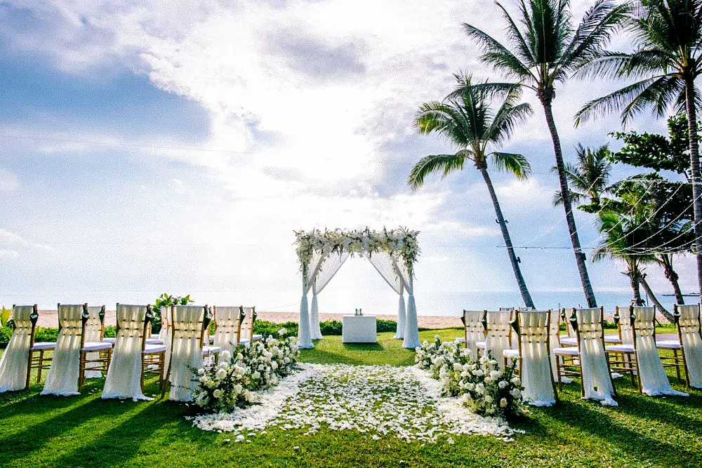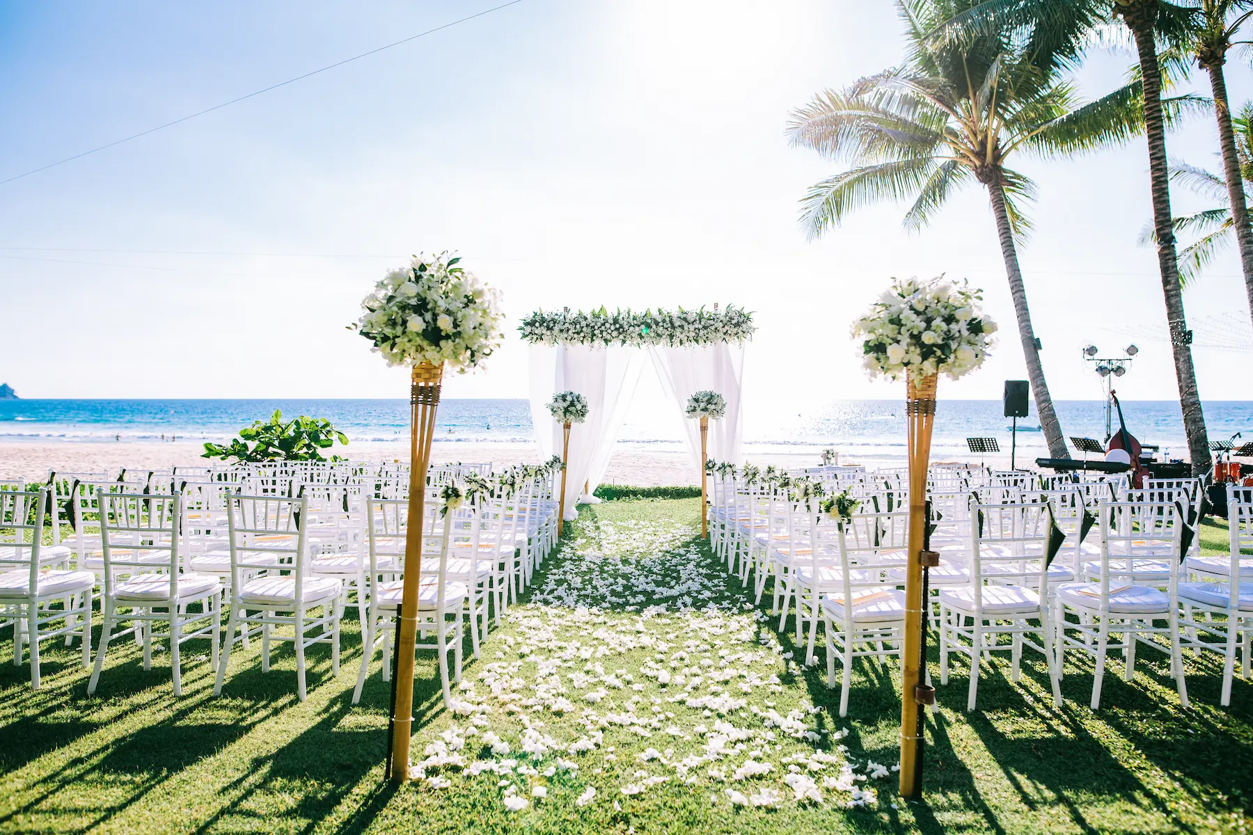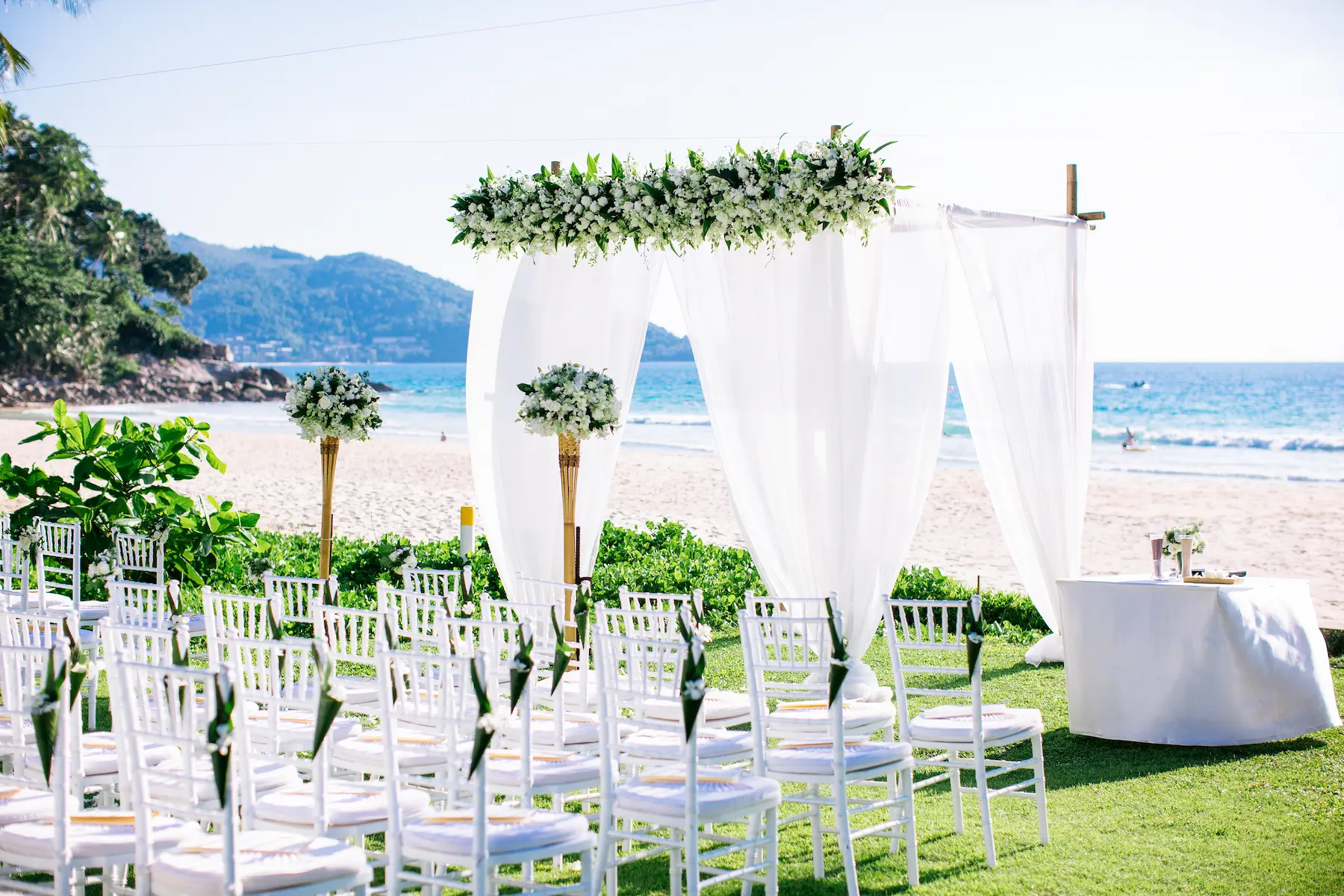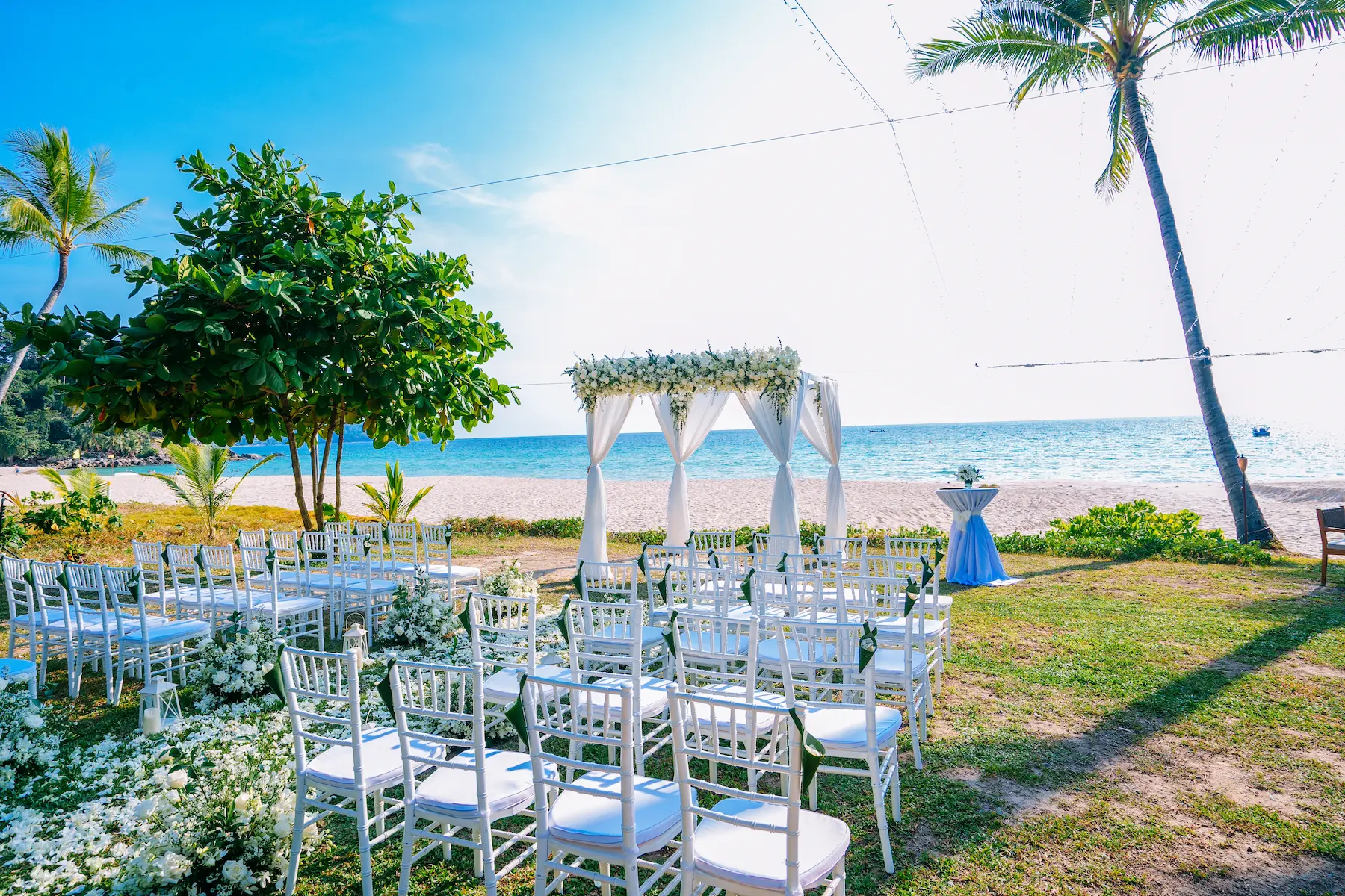A luxury beachfront resort with a fascinating history, the Surin is located right on the secluded Pansea Beach. The outstanding contemporary design is the work of renowned American architect Edward Tuttle, who harmonized Thai and Western elements into a timeless masterpiece. There is an amazing beachfront area dedicated exclusively to weddings, guaranteeing absolute privacy during the whole event. The ceremony can take place either right on the beach or on the adjacent lawn, and the reception either on the lawn or in the indoor wooden restaurant next to it. These are all great choices, with the ultimate decision depending only on individual preferences.
