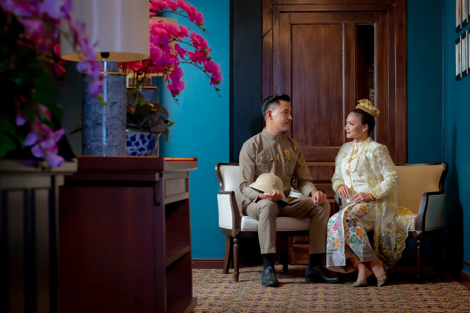 While maintaining its core cultural elements, modern Peranakan weddings have evolved. The groom typically wears a Western-style suit, often accompanied by traditional accessories like gold chains or brooches. This adaptation reflects the Peranakan community’s historical role as cultural intermediaries between East and West.